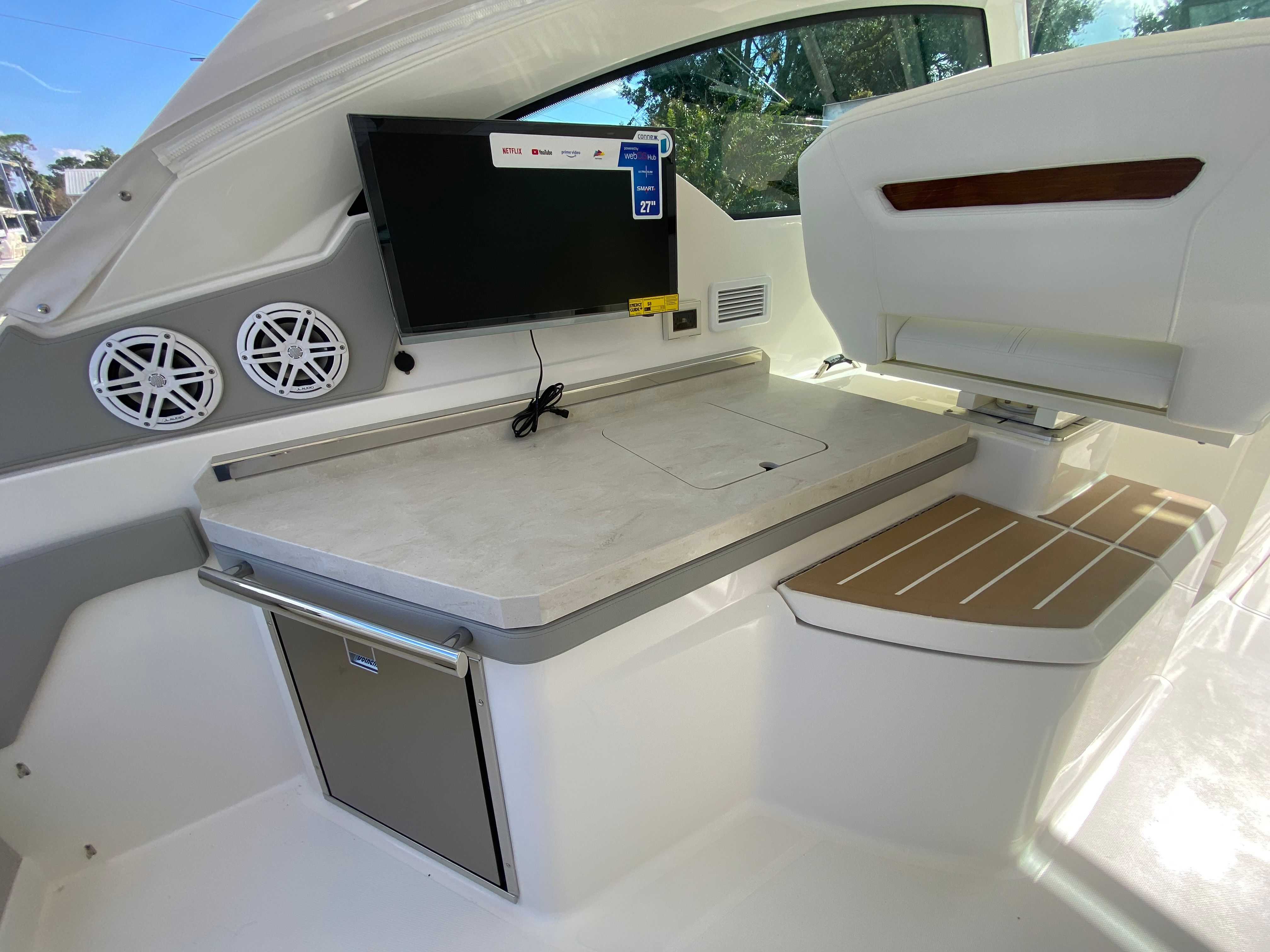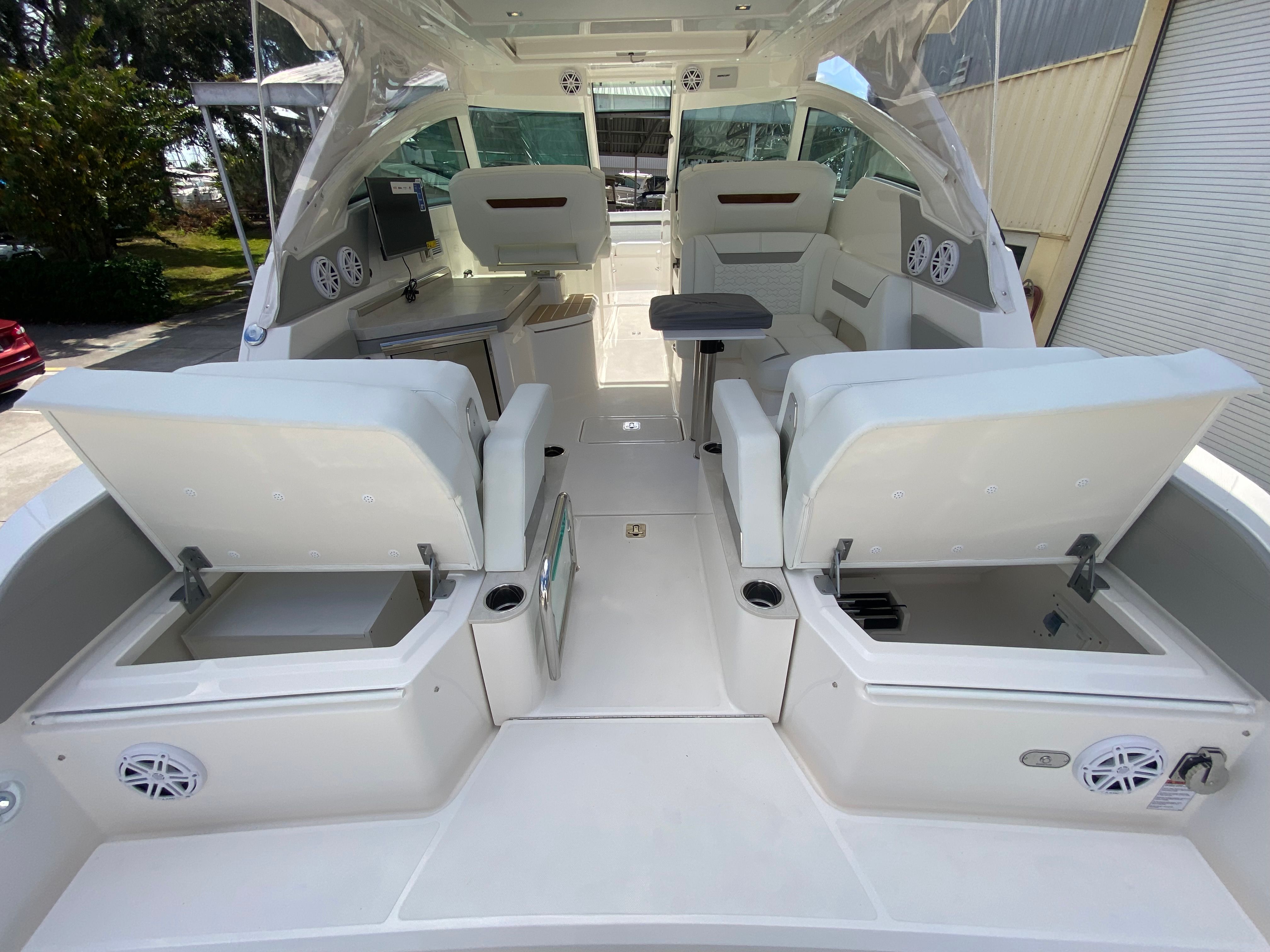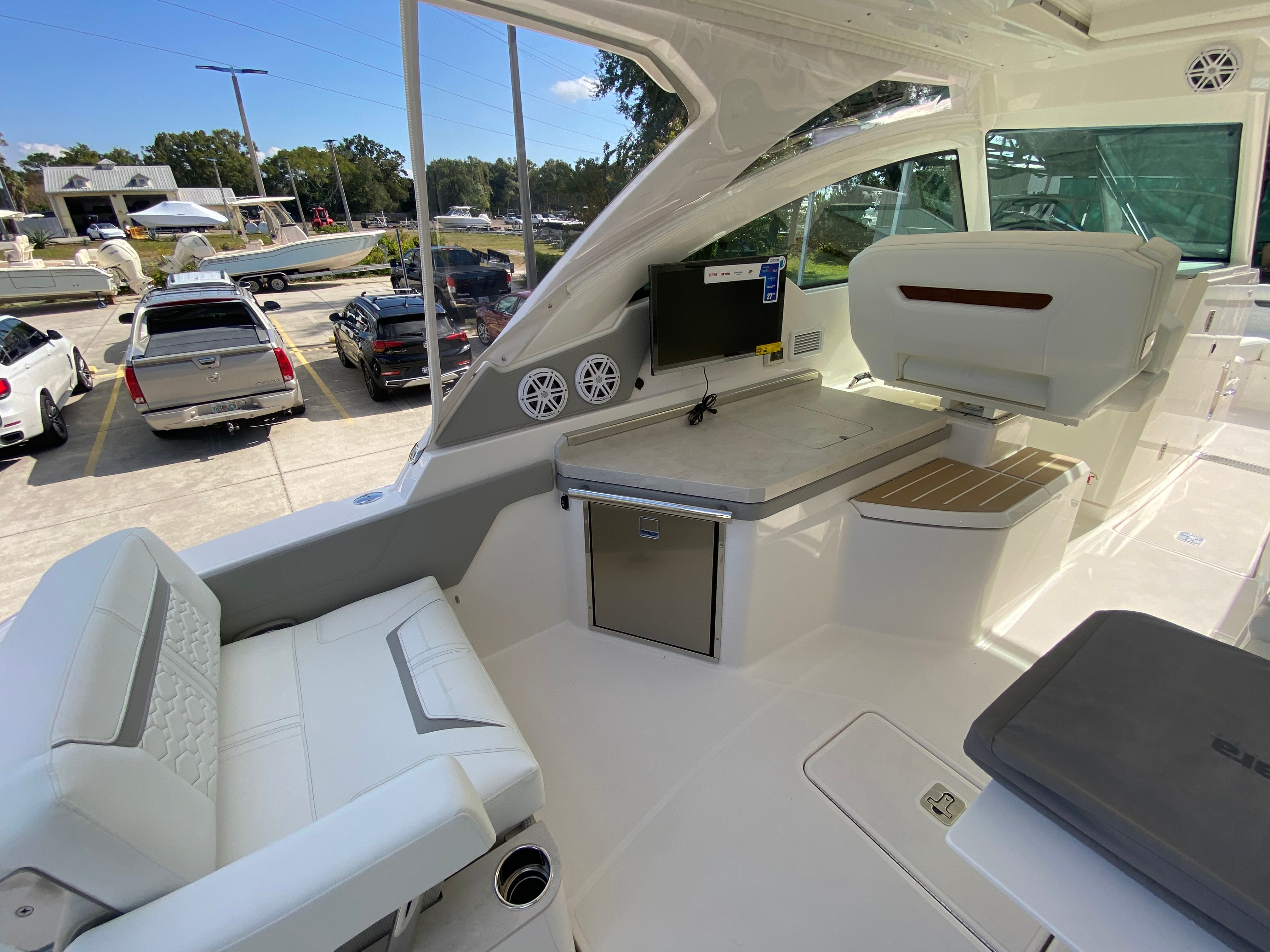 This yacht truly shines in a variety of scenarios. Imagine setting out for a family outing, where everyone can relax in comfort and enjoy the onboard entertainment. The spacious deck is perfect for hosting friends, with plenty of room for socializing and dining. For those seeking adventure, the powerful engines and advanced navigation systems make it easy to explore new destinations or embark on fishing trips. The Mediterranean Style Sunshade and drop curtains provide flexibility for both sunny days and cooler evenings, ensuring you’re always comfortable. Whether you’re planning a luxury getaway or a casual day on the water, the Tiara Yachts 34 LX adapts to your needs and exceeds expectations.