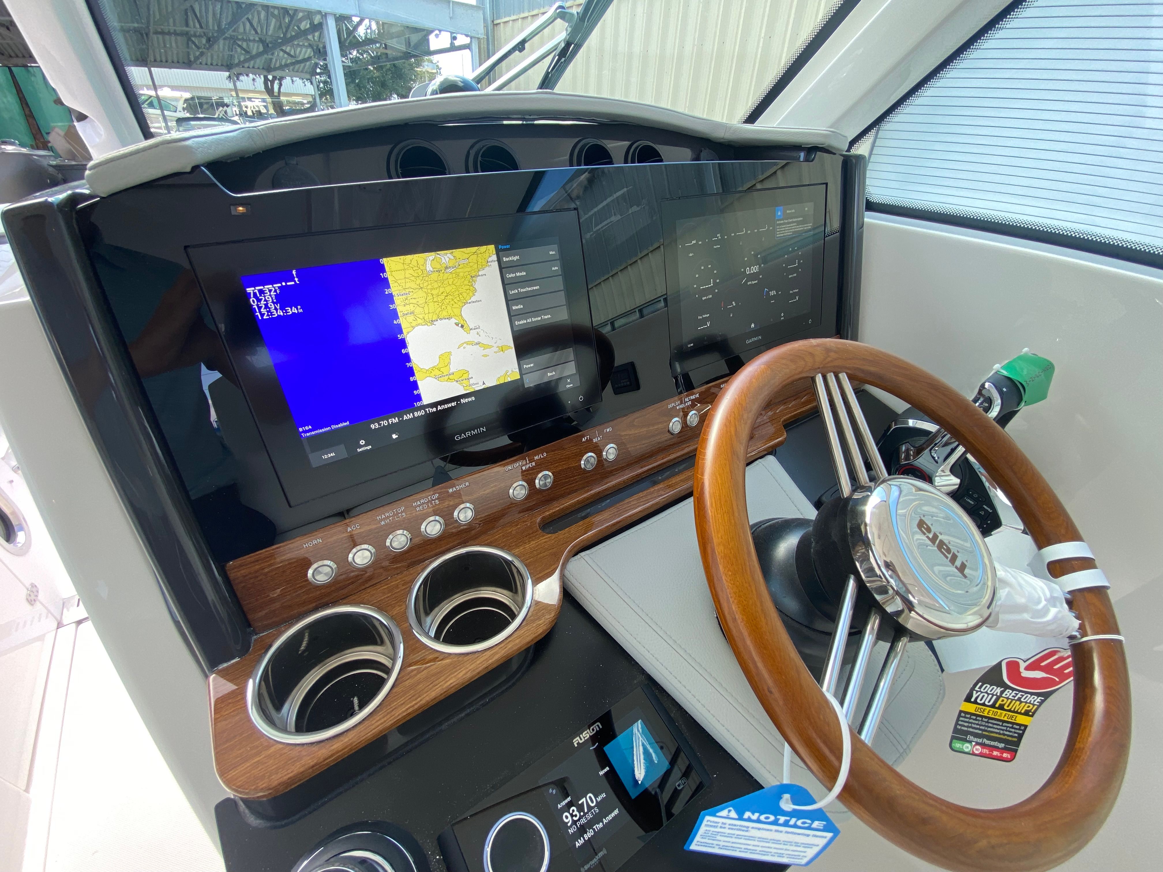 The Tiara Yachts 34 LX is packed with special features that elevate your boating experience to new heights. Enjoy the comfort of Cool Helm Air Conditioning with Heat, keeping the helm area pleasant in any weather. The Macerator Waste System ensures easy and efficient waste management, while the Cockpit TV provides entertainment for you and your guests. The Syn Teak Deck - STD Package in Natural offers a beautiful, low-maintenance surface that enhances the yacht’s aesthetic appeal. For those who love soaking up the sun, the Forward Manual Mediterranean Style Sunshade provides ample protection, and the Drop Curtain with Side Curtains in Natural offers privacy and shelter when needed. Navigation is made simple with the Additional Garmin 12" Display, giving you clear and comprehensive control over your journey.