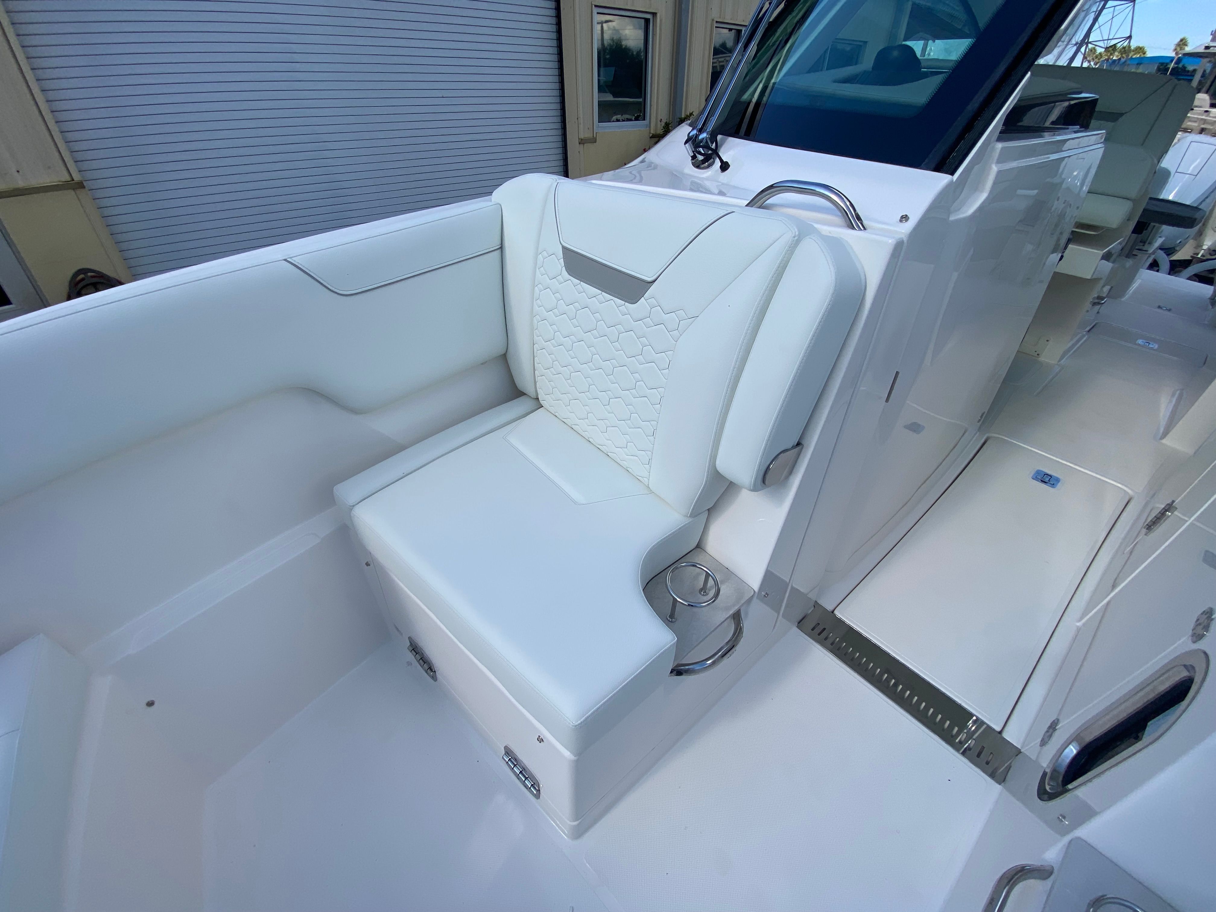 Power and precision are at the heart of the Tiara Yachts 34 LX. Equipped with twin Mercury V10 425 HP engines, this yacht boasts a combined 850 horsepower, delivering exhilarating speed and smooth handling. The advanced JPO (Joystick Piloting for Outboards) system provides effortless maneuverability, making docking and navigating tight spaces a breeze. Whether you’re cruising along the coastline or heading out for a day of adventure, the 34 LX offers a responsive and thrilling ride. The generator ensures reliable power for all your onboard systems, while the Panda 5KW/6 Gal Water Heater adds convenience for extended trips.