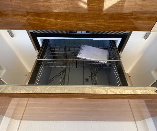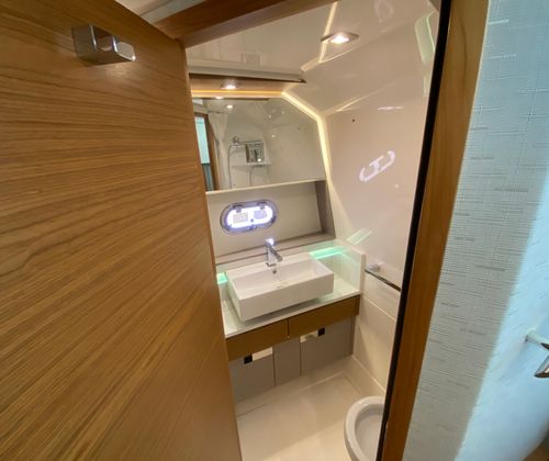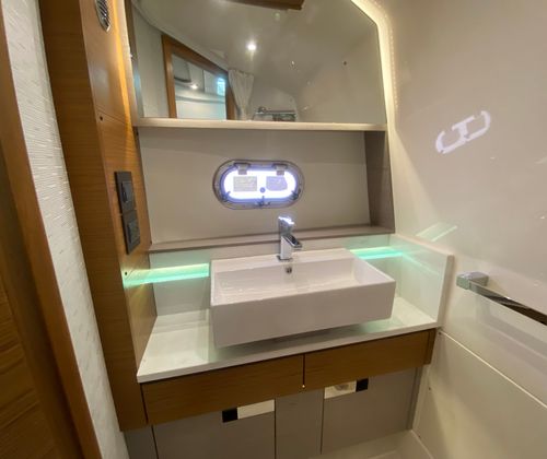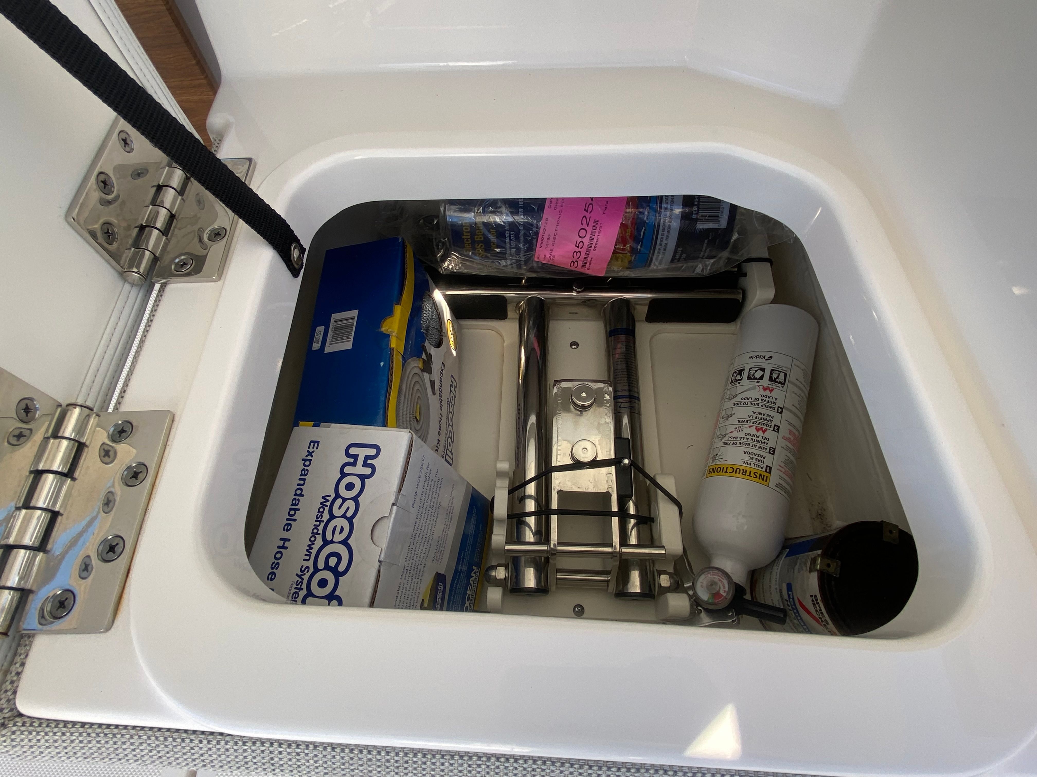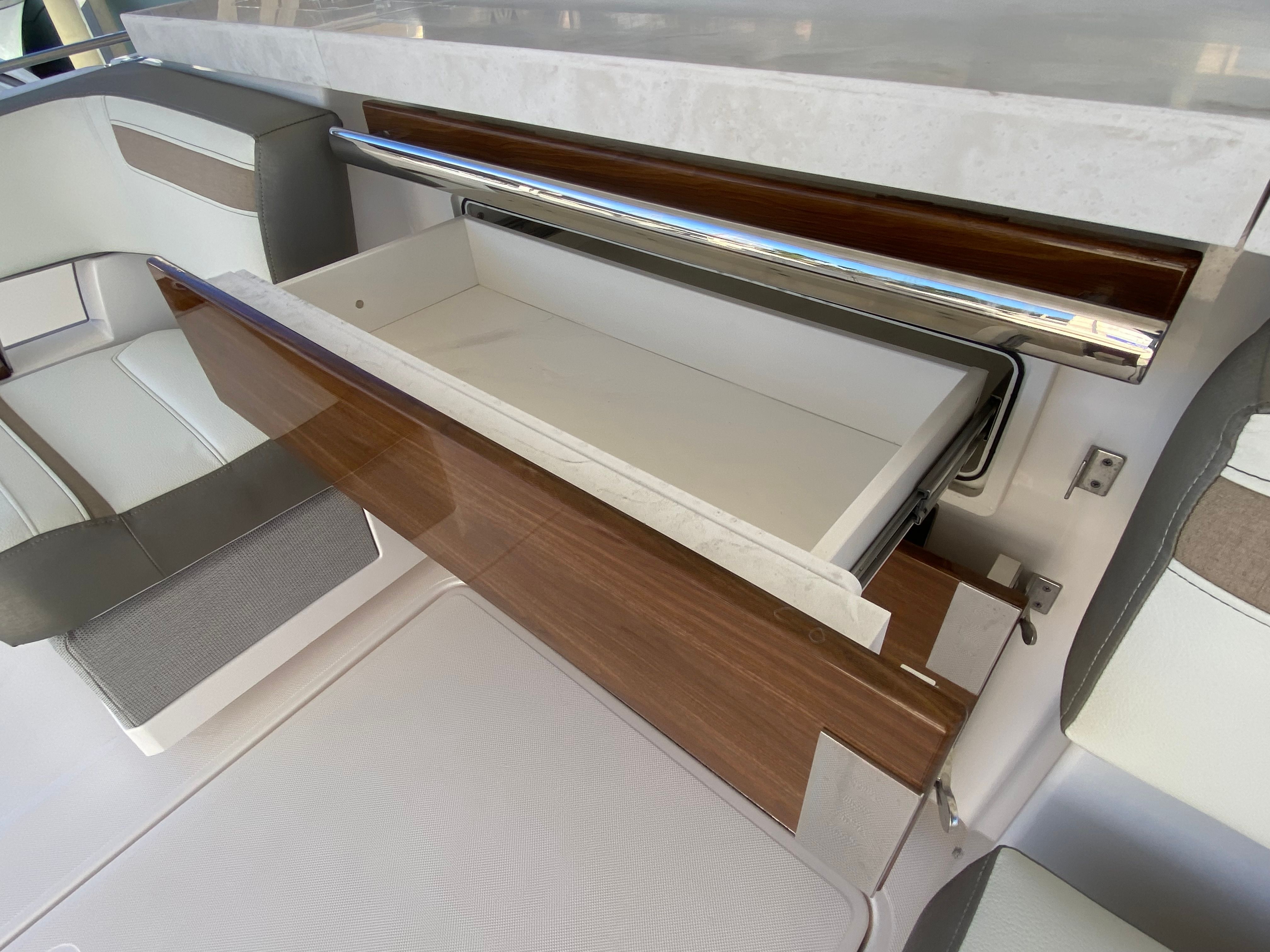 The Tiara Yachts 38 LS is designed with practicality in mind, making ownership as enjoyable as it is rewarding. The raw water cockpit washdown system simplifies post-adventure cleanups, while the oil changer for the generator streamlines routine maintenance. The yacht’s size and maneuverability make docking and storage straightforward, even for those new to yachting.Fuel efficiency is enhanced by the advanced Mercury V10 engines, allowing you to spend more time on the water and less time refueling. The thoughtful layout provides ample storage for gear, water toys, and provisions, ensuring you are always prepared for whatever the day brings. The fish module adds another layer of versatility, making the 38 LS an excellent choice for those who enjoy both leisure cruising and serious fishing.